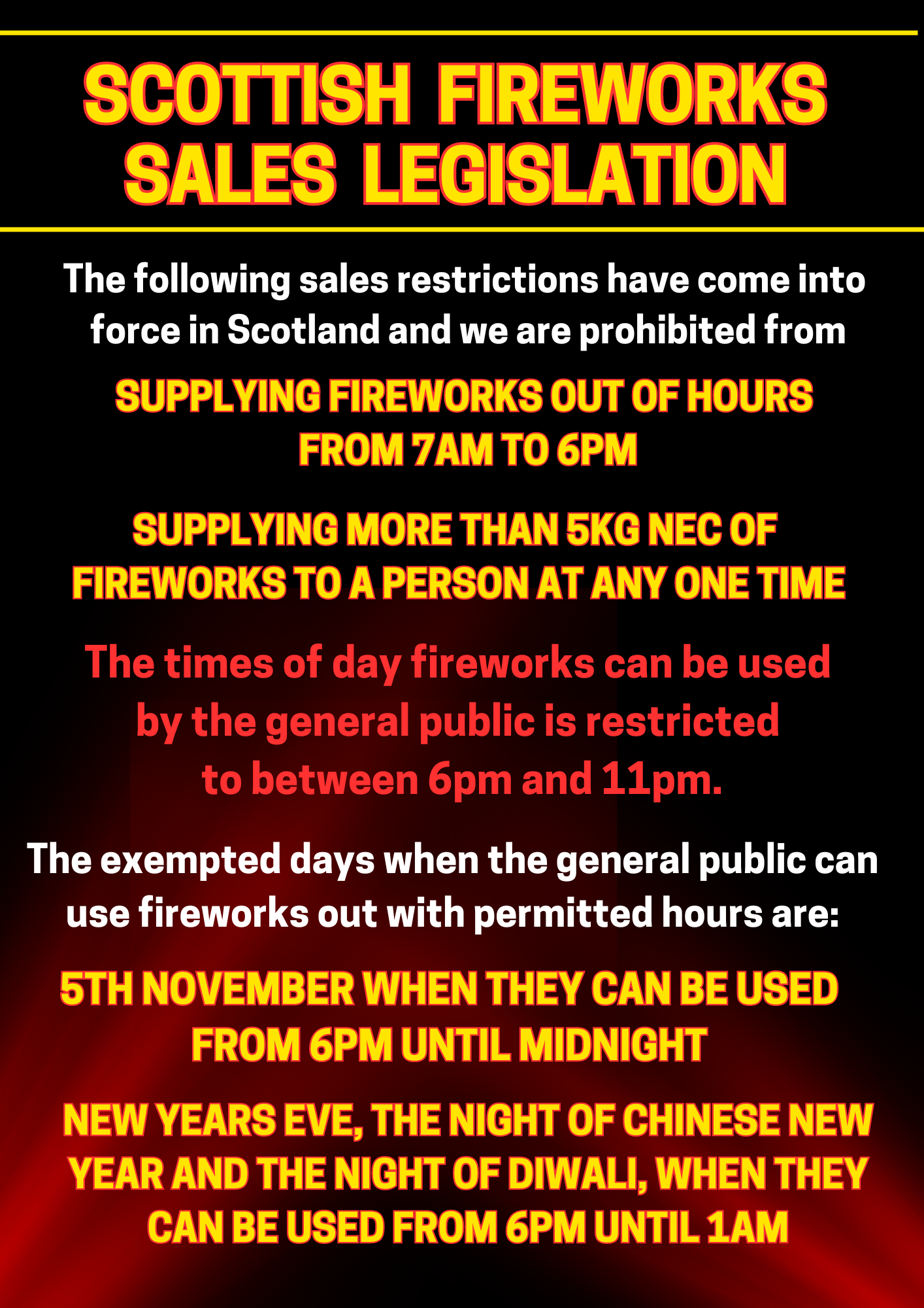 *This extends to midnight on the 5 November and 1am on Hogmanay,